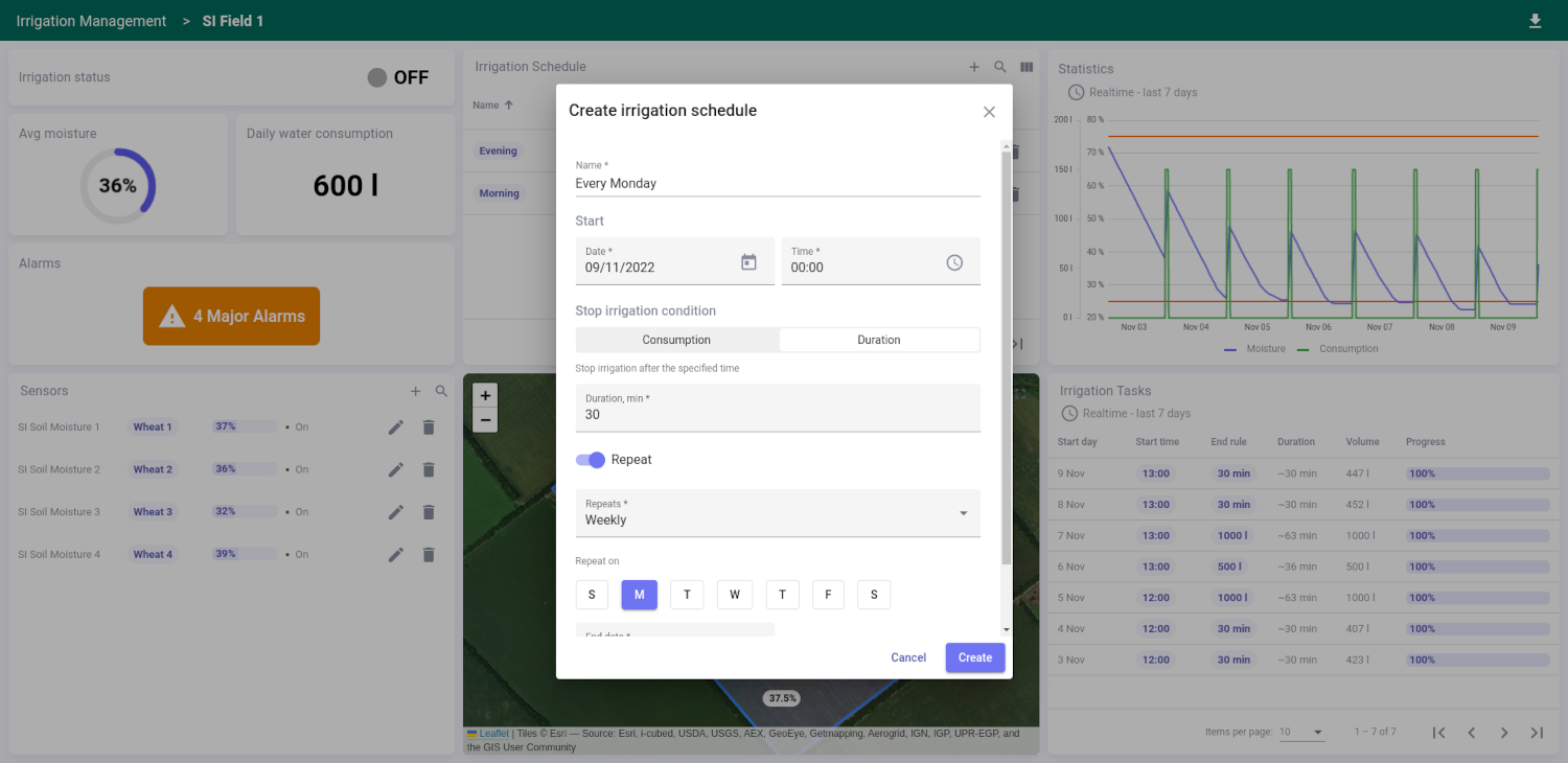 Set precise irrigation schedules and let our system handle the rest, ensuring optimal water usage.